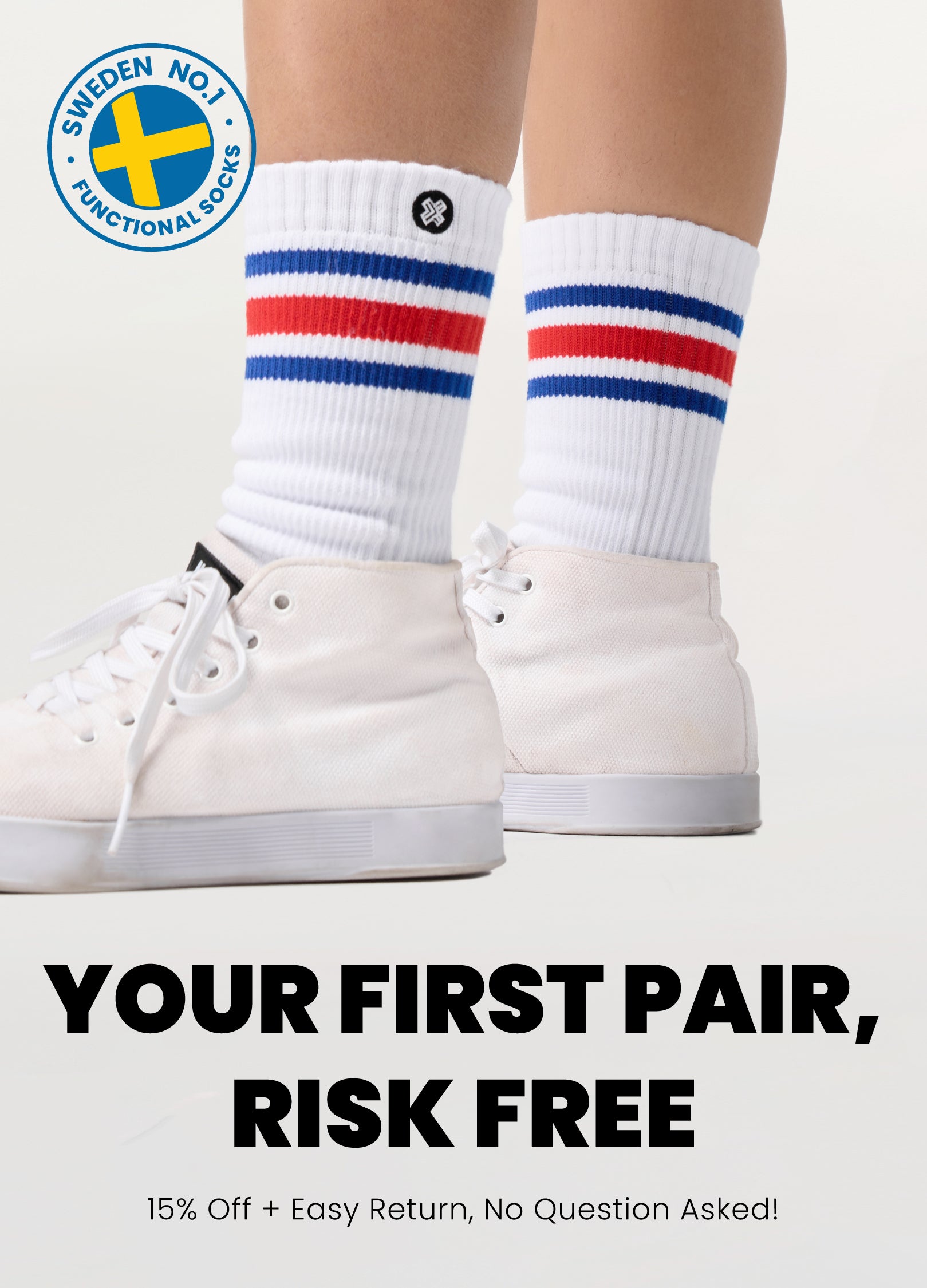 That’s why your first pair of Crossfeet socks comes with 15% off and a risk-free guarantee.